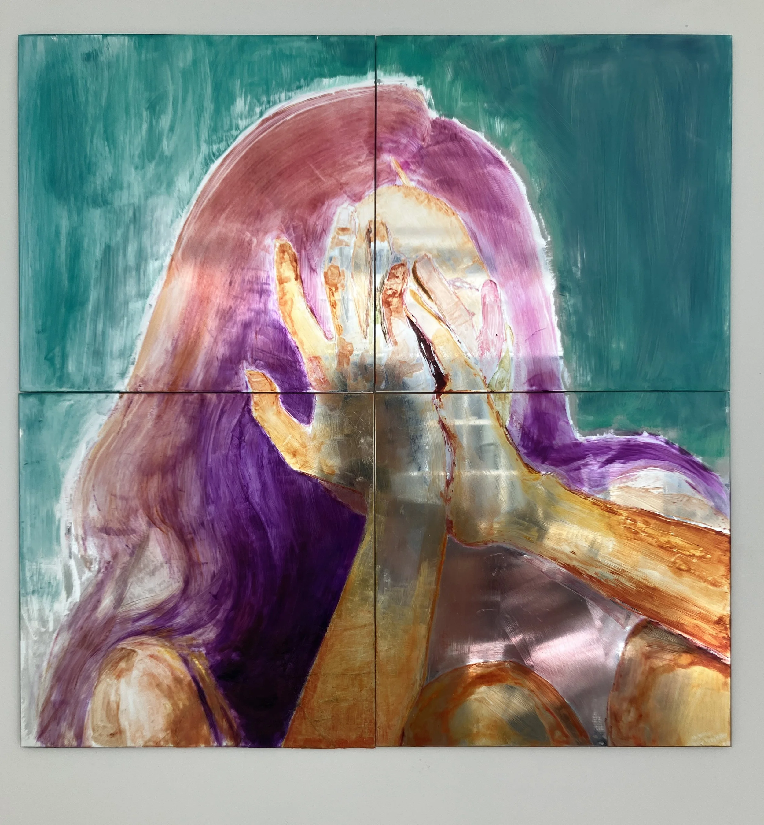 Oil, Acrylic, Crayon, Mica powder, resin, on IKEA mirror tiles